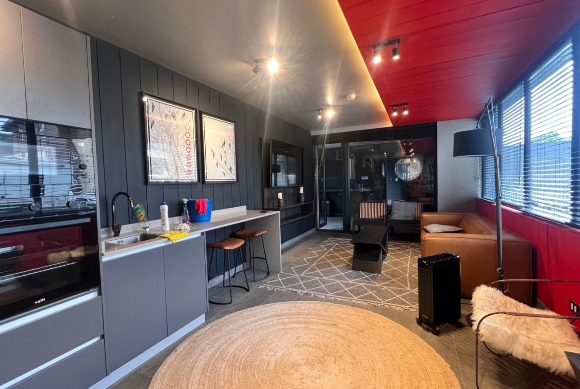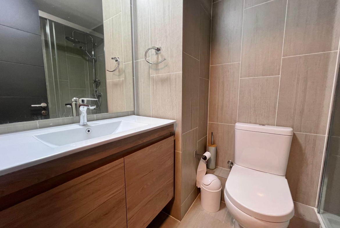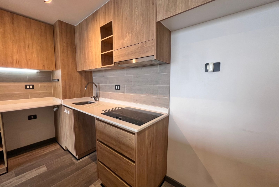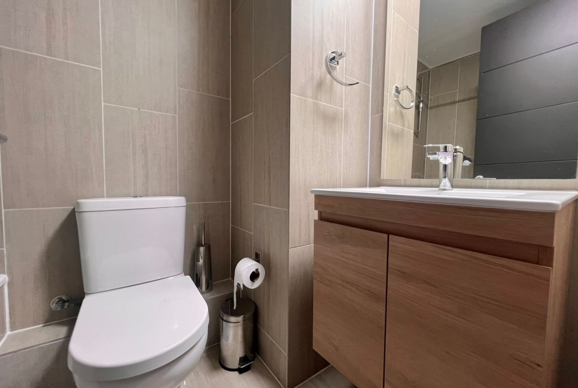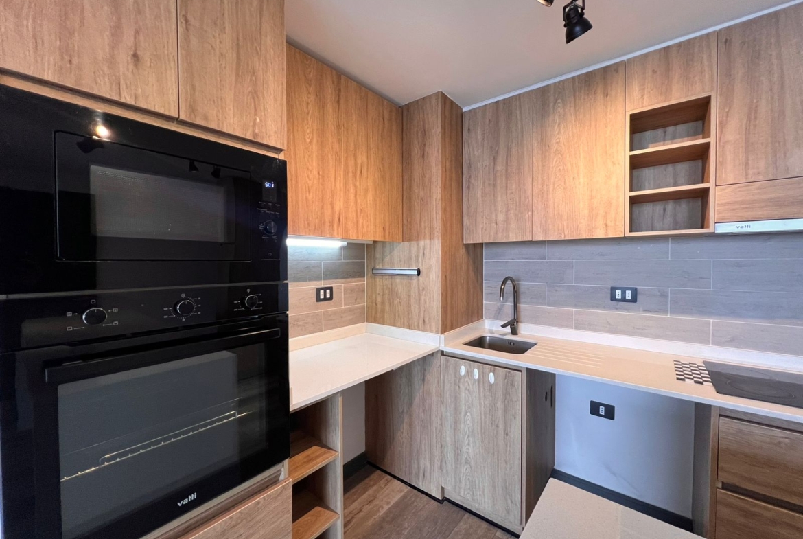 El living comedor conecta directamente con la terraza, creando un espacio perfecto para compartir un café al amanecer o un atardecer con amigos y familia. La cocina de concepto abierto está diseñada para quienes disfrutan cocinar y convivir: moderna, full electric, equipada con horno y microondas empotrado, encimera, campana extractora, isla de granito y muebles de gran estilo. Además, cuenta con conexión para lavadora y lavavajillas, pensada para tu comodidad.