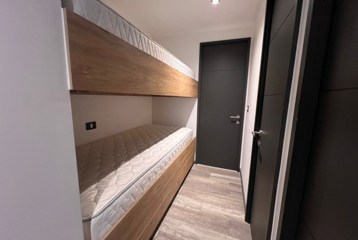 En el sector privado encontrarás 3 dormitorios con clóset y vista al lago, incluyendo un dormitorio principal en suite. Un baño familiar completo y una práctica litera náutica permiten recibir invitados sin preocupaciones.