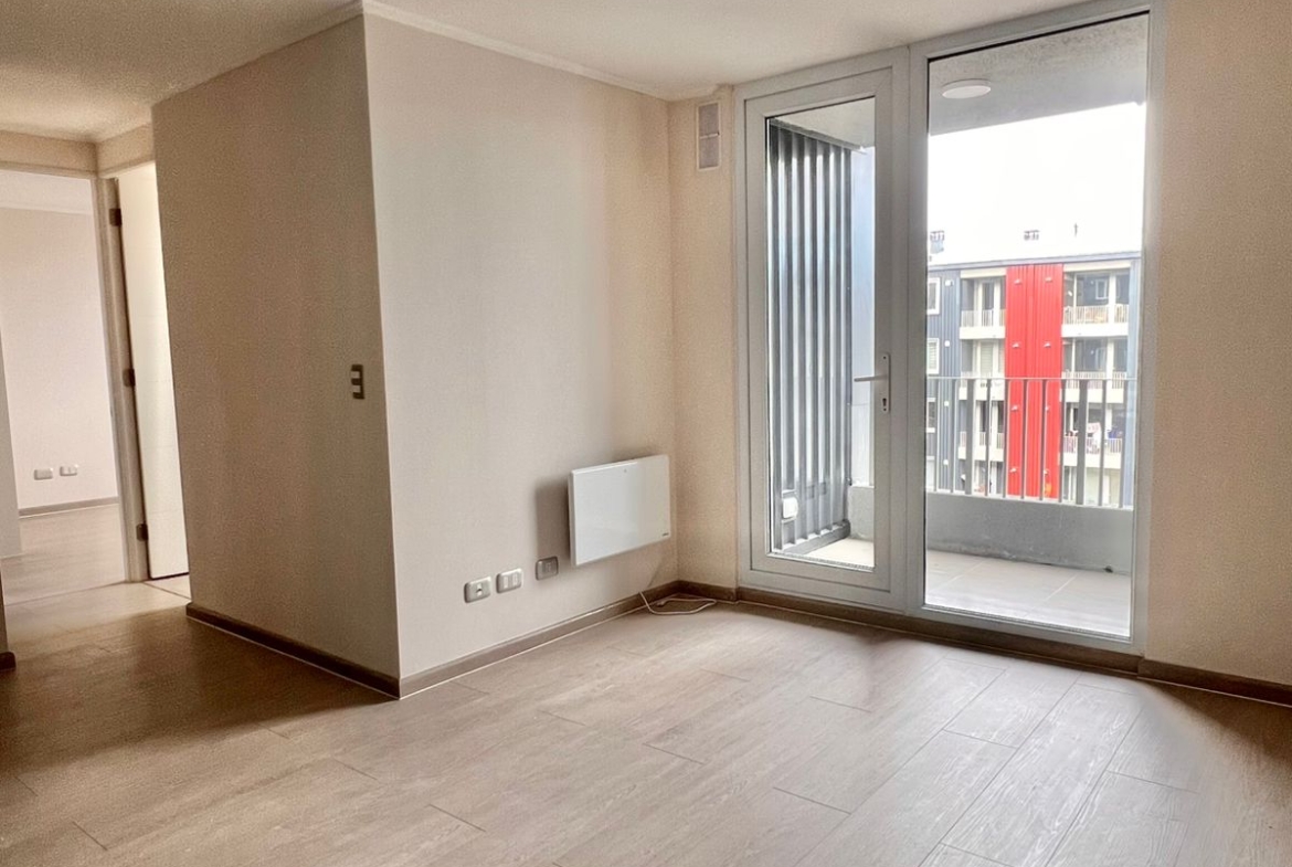 Descubre este luminoso y acogedor departamento de 2 amplios dormitorios y 1 baño, ideal para quienes valoran el confort y el estilo. Su living conectado a una cocina de concepto abierto —completamente amoblada y equipada con encimera a gas, horno eléctrico empotrado y campana— crea un ambiente perfecto para vivir y compartir y salida directa a balcón tipo terraza para conectar con la vista hacia el exterior.Además, incluye logia con lavadero, espacio para lavadora y calefont y estacionamiento privado para tu mayor comodidad.Todo lo que necesitas, ¡en un solo lugar!Valor arriendo: $500.000 mensuales con gastos comunes incluidos.Amenidades del condominio:Conserjería 24/7 para tu seguridad.Estacionamiento de visitasSala de uso comúnJuegos infantiles y áreas de esparcimientoBicibleterosUbicado en un barrio de gran demanda y plusvalía, seguro y tranquilo, con excelente conectividad. A minutos de colegios, supermercados, centros comerciales, gimnasios, hospital y la Ruta 5.¡No dejes pasar esta oportunidad! Agenda tu visita hoy mismo y disfruta tu nuevo hogar desde el primer minuto.FORMA VISITA: De lunes a domingo previa coordinación