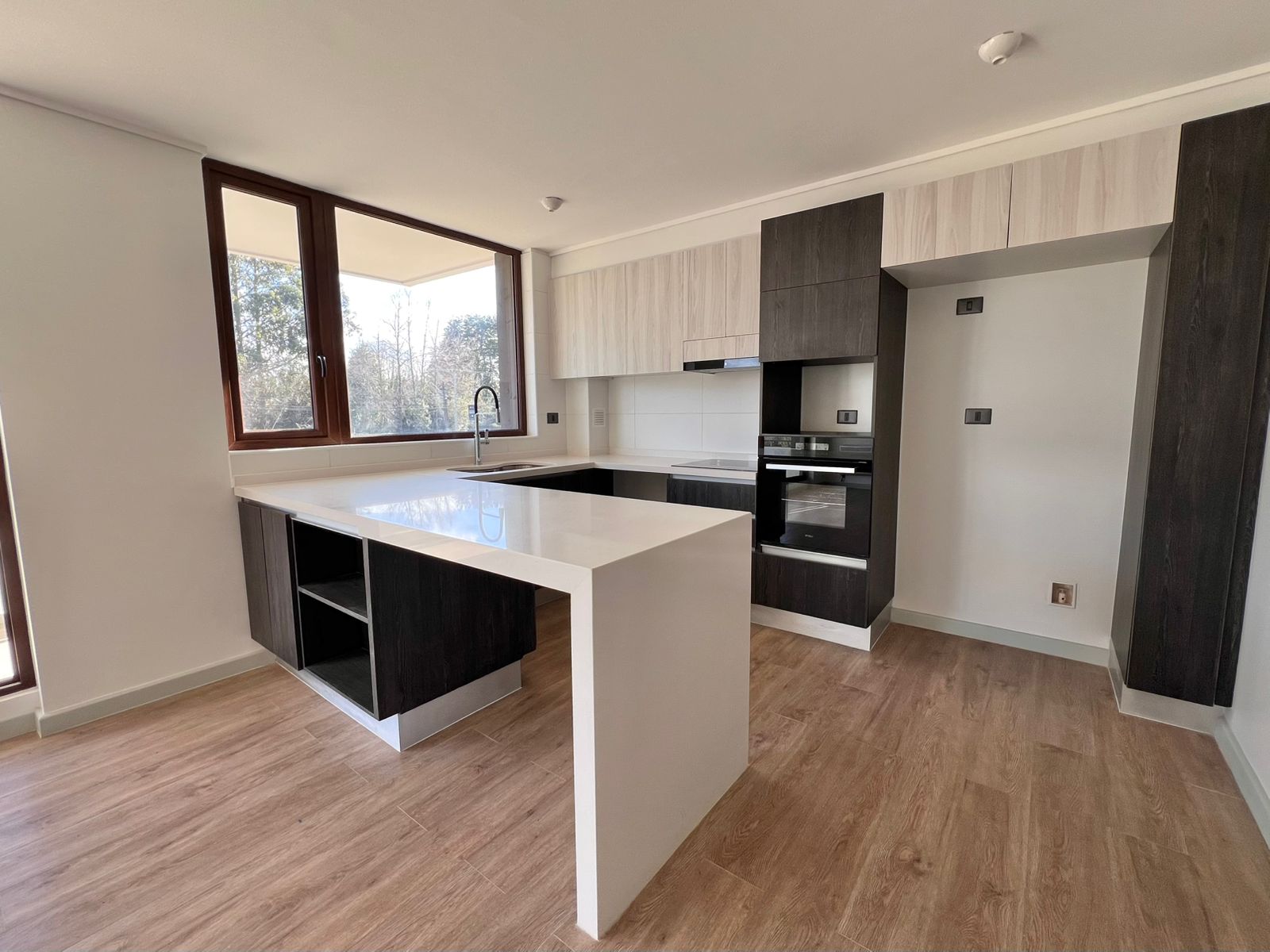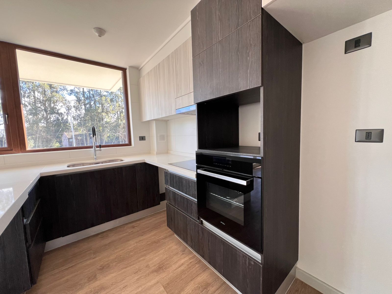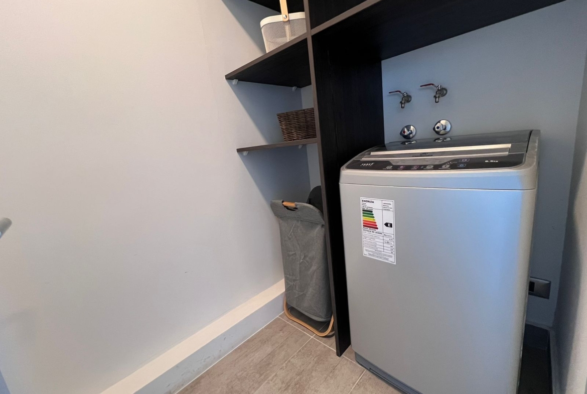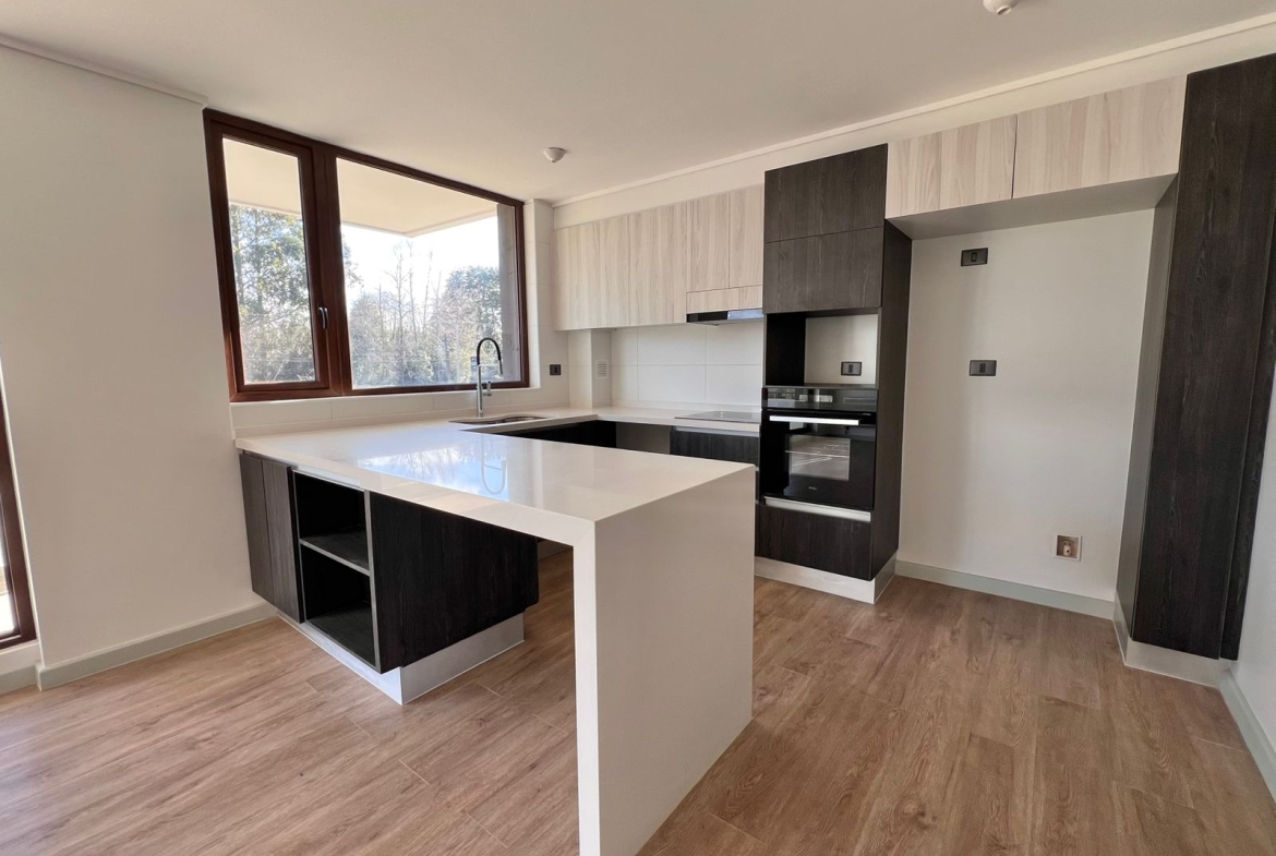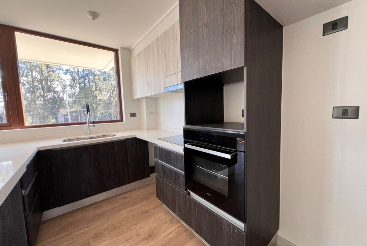 Imagina despertar cada mañana con una hermosa vista a través de ventanales termopanel de muro a muro, disfrutar tu café en una amplia terraza privada, o preparar tus comidas en una cocina moderna completamente equipada con encimera vitrocerámica, horno empotrado y campana extractora.