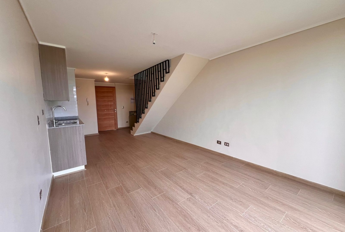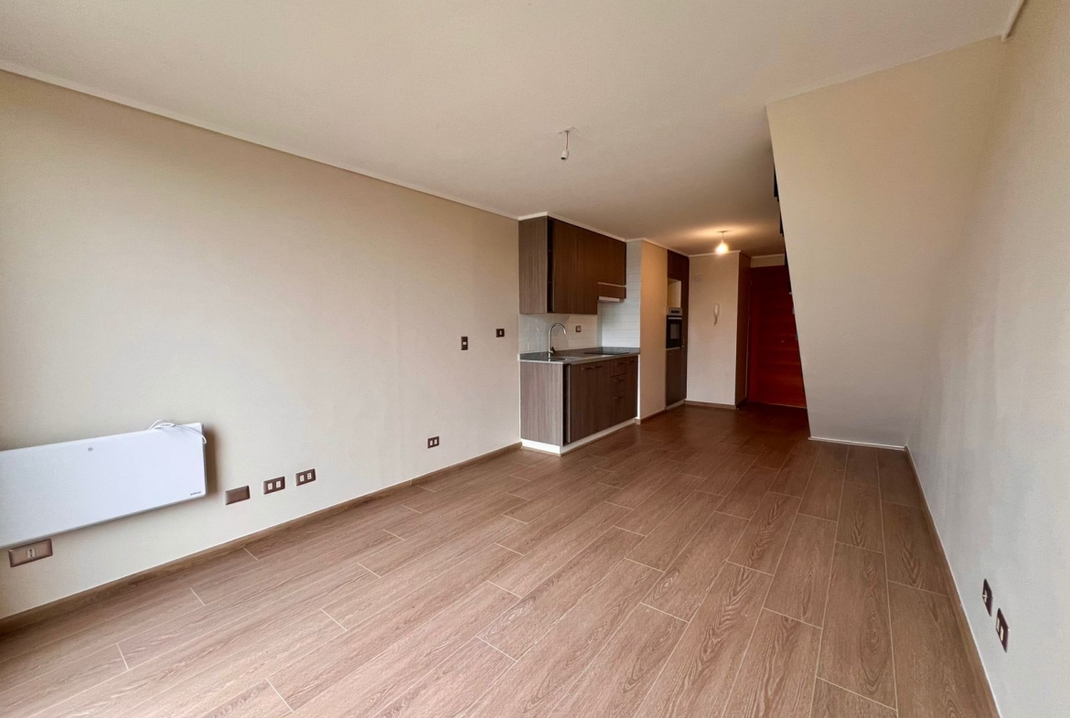 Este loft tipo dúplex de 48 m² lo tiene todo: espacios amplios, cocina equipada con horno eléctrico empotrado, encimera vitrocerámica, campana extractora y modernos muebles, dormitorio con baño en suite y un amplio y luminoso living comedor gracias a su orientación norte/sur con salida directa a terraza.